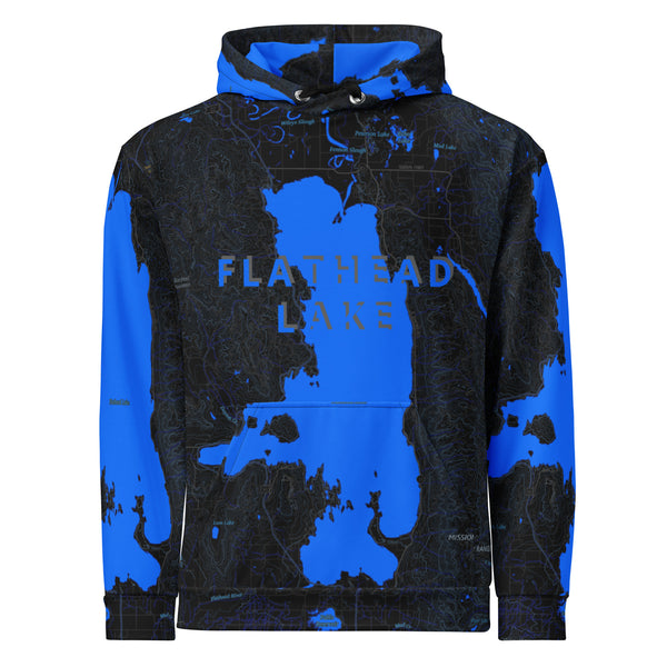 Flathead Lake needs no introduction, and neither will you when you wear the Flathead Lake Midnight Treeline Hoodie to your next outing.