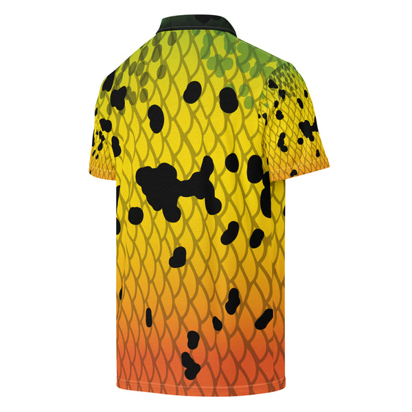 The Peacock Bass Fly Cast Polo Shirt features a sleek slim fit that offers a modern and polished look, complemented by a classic polo collar. Made from soft, breathable, and lightweight fabric, it's ideal for various occasions—from office casual wear to looking good on the boat and social events.
